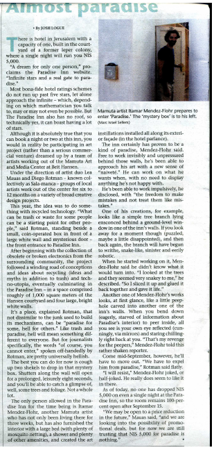 Almost Paradise, by Joshe Logue, Jerusalem Post 27.8.15