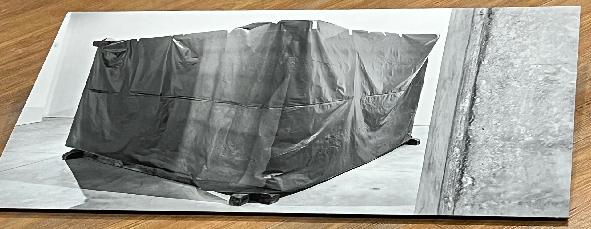 The two Deller sukkahs – the “original” (on display at the Israel Museum) and the “replica” – tell about different families, erased communities, multiple layers of history, distant geographical spaces, persecutions, and wanderings. In the present installation another layer is added to the biography of the double: documentation of the event in which it was shrouded in black in an act of protest (picture), and a video documentation of the moment in which it was disassembled, packed up, and willingly but painfully removed from the Ramat Gan Museum of Israeli Art as part of an exodus of works.