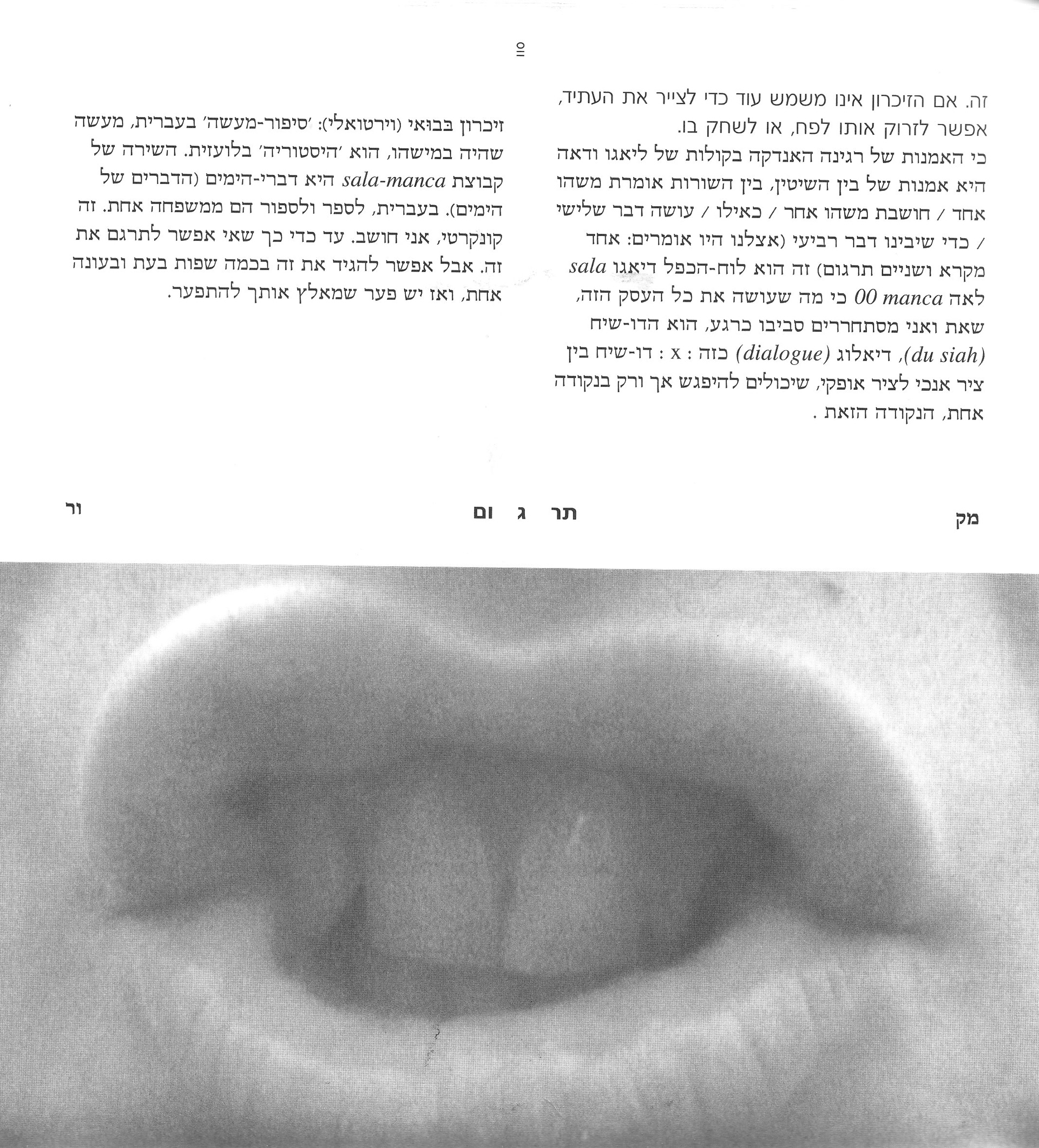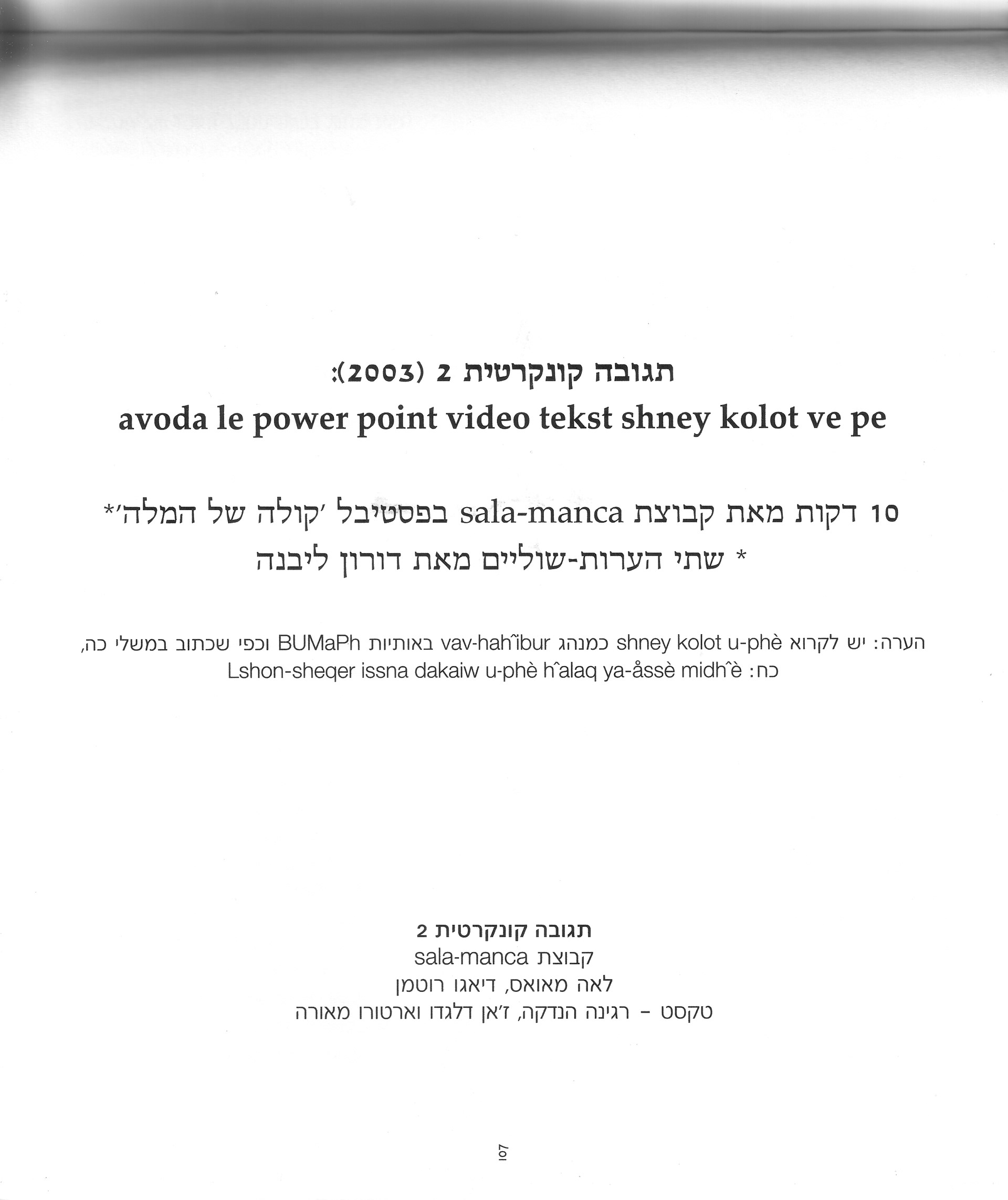 Doron Livne, "Concrete Response 2", in the book Kola shel Hamila, Hadas Ophrat (ed.), Jerusalem: Hazira, 2004.