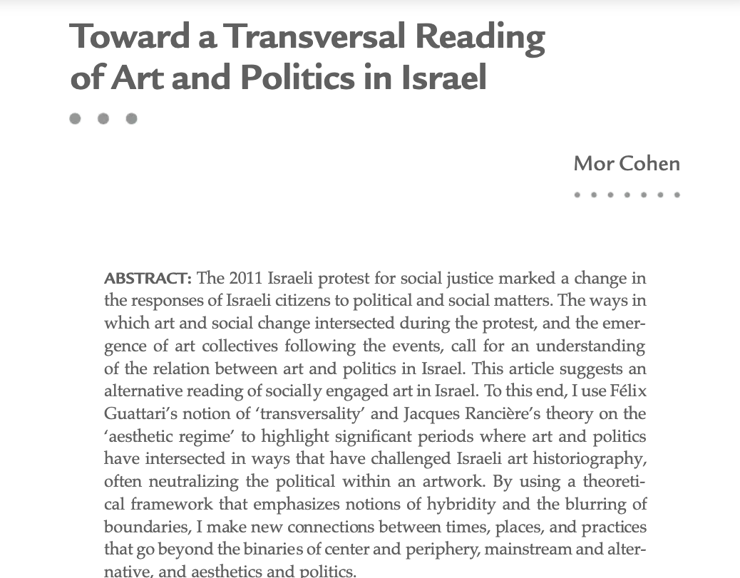 Toward a Transversal Reading of Art ...., Mor Cohen