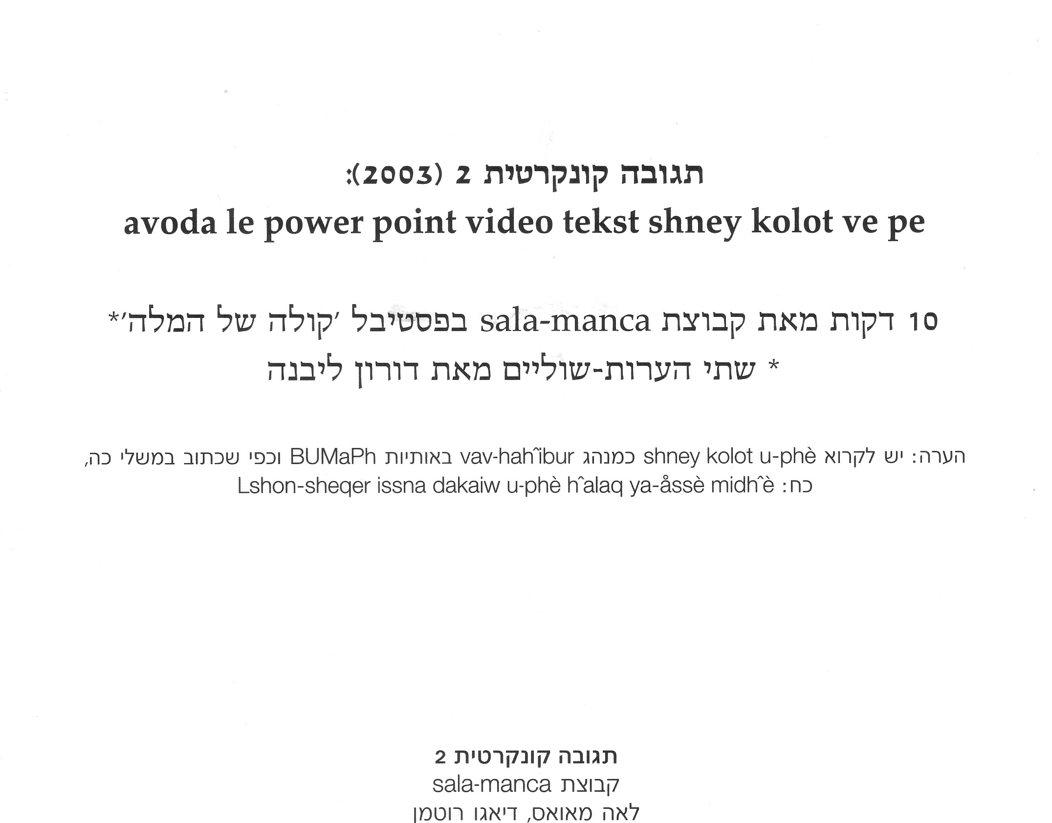 Home-Performance of Sala-manca, Tamar Rotem, 22.1.2014