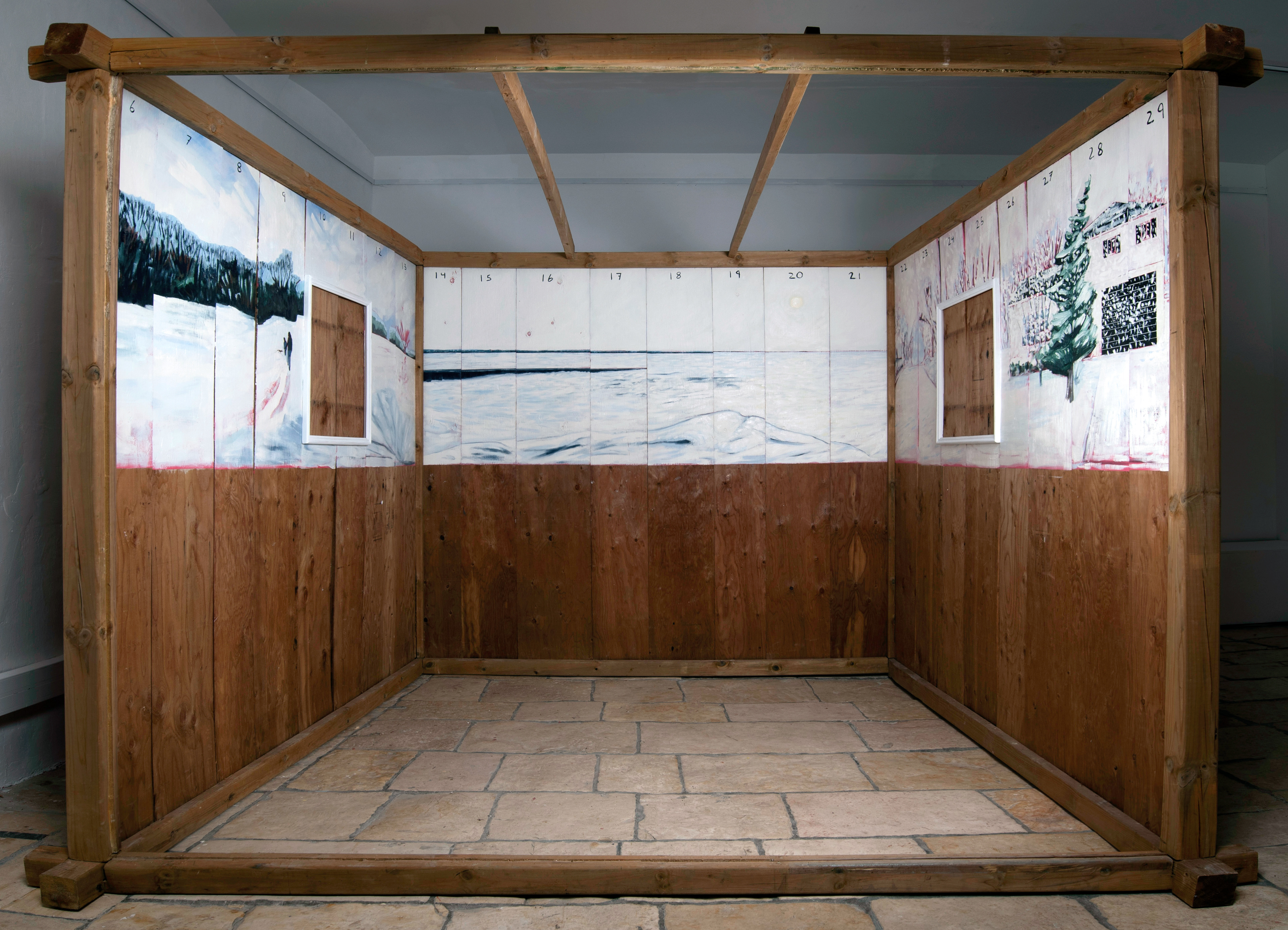 Approaching the Jewish holiday of Sukkot, near the beginning of our time in Kingston, we built a Sukkah in the yard. Contrary to the custom of dismantling the Sukkah after the end of the holiday, we left our Sukkah standing throughout the entire year, exposed to the extreme changes in weather. At the end of the winter we invited Canadian painter Brian Hoad to paint the snowy absentee landscapes of the Anishinaabe and Haudenosaunee peoples on the walls of the Sukkah and thus to commemorate the frozen Lake Ontario on the wall traditionally designated for an image of Jerusalem.