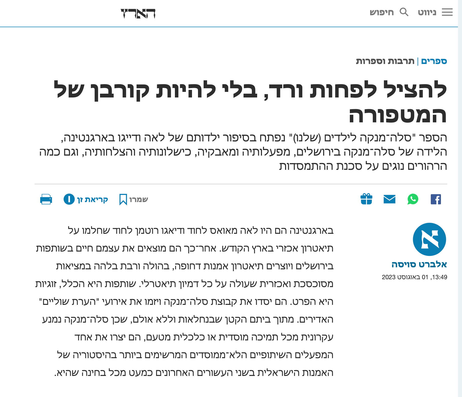 To Save at Least a Rose, Albert Swiss, Haaretz
